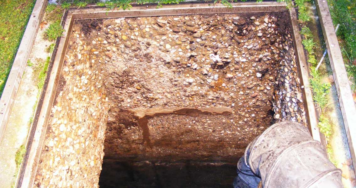 Nach 30 Betriebsjahren wurde eine umfassende Sanierung dieses Rücklaufschlammkanals aufgrund massiver Betonschäden erforderlich, die durch biogene Schwefelsäurekorrosion (BSK) ausgelöst wurde. Dieser vornehmlich aus der Kanalisation samt Schachtbauwerken, Pumpwerken und den Zulaufbereichen von Kläranlagen bekannte Schadensmechanismus hat seinen Ursprung in sauerstoffarmen Abwasser. Wird der Sauerstoffverbrauch im Wasser aufgrund mangelnder Turbulenz und langer Fließwege größer als die Sauerstoffverfügbarkeit, entstehen anaerobe Bedingungen. Dies führt dazu, dass Mikroorganismen im Abwasser gelöste Sulfate abbauen und Schwefelwasserstoff und Hydrogensulfid erzeugen. Mit zunehmender Temperatur steigt die Aktivität der Mikroorganismen und die Menge des produzierten Schwefelwasserstoffs und Hydrogensulfids. Dem pH-Wert des Abwassers kommt entscheidende Bedeutung für das prozentuale Verhältnis von Hydrogensulfid und Schwefelwasserstoff zu. Mit der Versäuerung des Abwassers steigt der Anteil an gelöstem Schwefelwasserstoff. Er liegt bei pH 6 bei gut 90 %, wobei nur noch rund 10 % Hydrogensulfid verbleiben. Dadurch entweicht das gelöste Gas verstärkt in den Luftraum. Turbulenzen im Abwasser fördern den Prozess der Ausgasung zusätzlich. Im Gasraum oberhalb des Wasserspiegels oxidieren Bakterien der Gattung Thiobacillus den Schwefelwasserstoff bei ausreichender Konzentration zu schwefliger Säure und Schwefelsäure. Für diesen Stoffwechselprozess benötigen sie Sauerstoff aus der Umgebungsluft. Die entstandene Schwefelsäure greift den Zementstein im Beton sehr stark an, löst das Bindemittel zunehmend auf und legt die Zuschlagsstoffe im Beton frei. Die Folge: Unter ungünstigen Bedingungen kommt es zum Abtrag von bis zu 10 mm pro Jahr. Zusätzlich kann ein sogenannter „treibender Angriff“ verursacht werden, bei dem das im Abwasser enthaltene Sulfat durch Reaktion mit dem im Zement enthalten C3A-Verbindungen Gips und Ettringit bildet. Diese nehmen ein größeres Volumen als die Ausgangsprodukte ein und verursachen Spannungsrisse im Beton. Hierdurch werden der zerstörerische „lösende“ Angriff noch beschleunigt und die Abtragsraten erhöhen sich weiter.